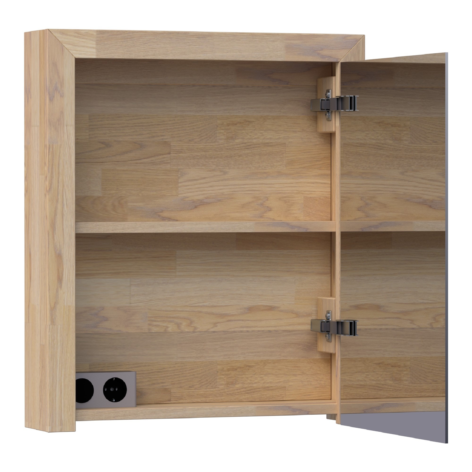 Brauer Rise spiegelkast 59x70cm massief eiken 1 deur - rechtsdraaiend - vingerlas eiken grijs natuurlijk en verfijnd