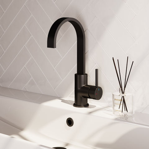 Deze hoge opbouw wastafelmengkraan is vooral handig als je veel ruimte boven de wastafel wilt, bijvoorbeeld om grotere voorwerpen af te spoelen. De draaibare uitloop maakt het gebruik extra flexibel. Als je wastafel weinig ruimte heeft of als je een inbouwkraan zoekt, is dit model minder geschikt. Houd er rekening mee dat mat zwart gevoelig kan zijn voor krassen; regelmatig onderhoud helpt om de kraan mooi te houden. Door de verschillende kleuropties kun je eenvoudig een variant kiezen die past bij jouw stijl.