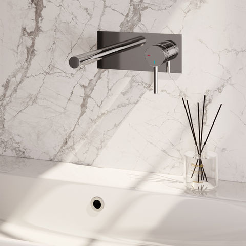 Deze inbouw wastafelmengkraan is handig als je een minimalistische uitstraling wilt en ruimte op je wastafelblad wilt besparen. Het model is vooral geschikt voor badkamers waar je kiest voor een wandmontage boven de wastafel. Houd er rekening mee dat de uitloop niet in te korten is, dus het is belangrijk om vooraf goed te meten of de afstand tot je wastafel klopt. Door de verschillende kleuropties kun je de kraan afstemmen op de rest van je badkamer. Dit model is minder geschikt als je liever een opbouwkraan wilt of als je flexibiliteit zoekt in de lengte van de uitloop.