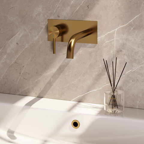Offerte aanvraag voor Brauer Stripe inbouw wastafelmengkraan met gebogen uitloop en afdekplaat model A2 goud geborsteld PVD | Geborsteld goud PVD | J-uitloop | Met achterplaat | Links