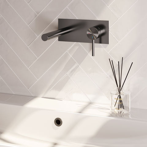Offerte aanvraag voor Brauer Stripe inbouw wastafelmengkraan met rechte uitloop en afdekplaat model A1 gunmetal geborsteld PVD | Geborsteld gunmetal PVD | I-uitloop | Met achterplaat | Rechts