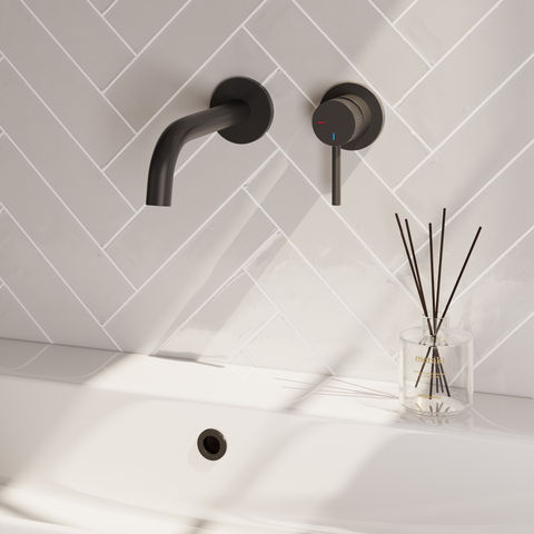 Offerte aanvraag voor Brauer Stripe inbouw wastafelmengkraan met gebogen uitloop en rozetten model A1 mat zwart | Mat zwart | J-uitloop | Met rozetten | Rechts