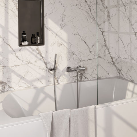 Deze opbouwkraan is vooral handig als je op zoek bent naar een eenvoudige installatie aan de muur en een directe combinatie van bad- en douchefunctie. Het is een praktische keuze voor gezinnen of als je graag afwisselt tussen bad en douche. Houd er rekening mee dat een opbouwkraan meer zichtbaar is dan een inbouwvariant, wat invloed kan hebben op het uiterlijk van je badkamer. Door de verschillende afwerkingen kun je de set goed afstemmen op je persoonlijke smaak en andere elementen in de ruimte.
