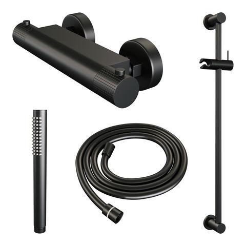 Offerte aanvraag voor Brauer Stripe opbouw douche thermostaatkraan SET 01 met glijstang en staaf handdouche en doucheslang mat zwart | Mat zwart | Staafhanddouche