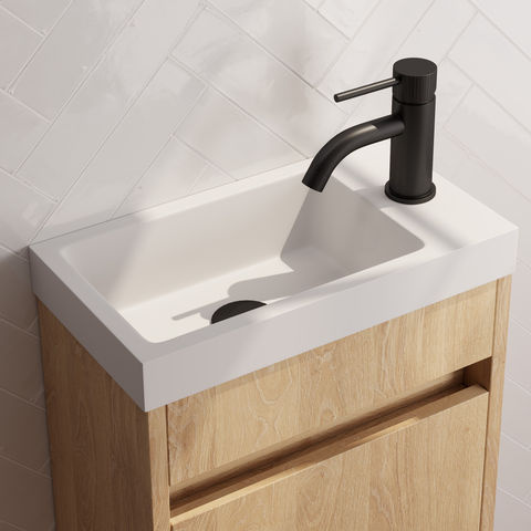 De Brauer Stripe opbouw fonteinkraan in mat zwart is een compacte kraan die je plaatst op een fontein in het toilet of een kleine wastafel. Dit type kraan is bedoeld voor ruimtes waar je vooral je handen wast en waar een strak, minimalistisch ontwerp belangrijk is. Je kiest voor deze kraan als je een modern accent wilt toevoegen aan een kleine badkamer of toiletruimte en geen warm water nodig hebt op deze plek.