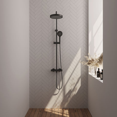 Offerte aanvraag voor Brauer Stripe opbouw thermostatische regendouche SET 02 met 25 cm hoofddouche en 3-standen handdouche en doucheslang mat zwart | Mat zwart | 3-standen handdouche