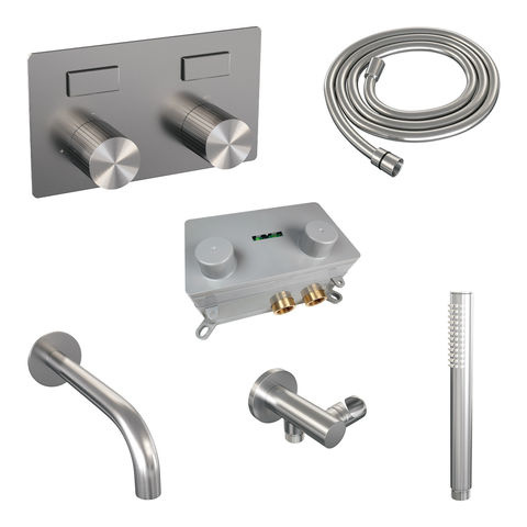 Brauer Stripe inbouw badthermostaat met drukknoppen | Geborsteld RVS | Staafhanddouche | Uitloop