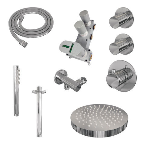 Brauer Stripe thermostatische inbouw regendouche SET 03 met 25 cm douchekop en plafondarm en staaf handdouche en doucheslang en wandaansluitbocht chroom | Chroom | Nee | Plafondbuis | Staafhanddouche