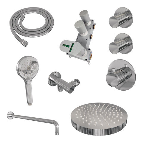 Offerte aanvraag voor Brauer Stripe thermostatische inbouw regendouche SET 05 met 25 cm douchekop en gebogen muurarm en 3-standen handdouche en doucheslang en wandaansluitbocht chroom | Chroom | Nee | Gebogen wandarm | 3-standen handdouche
