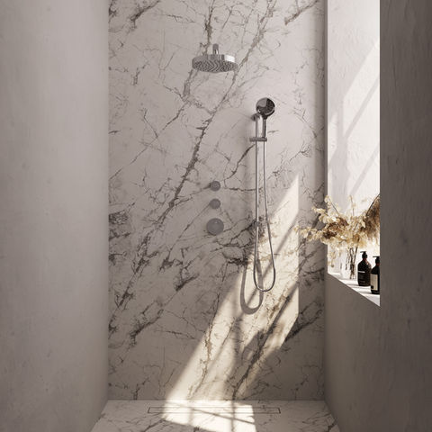 Deze inbouw regendoucheset is vooral geschikt als je een strakke, opgeruimde uitstraling in de douche wilt en bereid bent om het leidingwerk in de muur te laten verwerken. Dit maakt de set minder geschikt voor situaties waar je bestaande muren of tegels niet wilt openbreken. Dankzij de combinatie van een grote hoofddouche en een verstelbare handdouche is deze set praktisch voor gezinnen, stellen of iedereen die flexibiliteit belangrijk vindt. Houd er rekening mee dat het een inbouwset betreft, dus het is vooral een logische keuze bij een (grote) badkamerrenovatie of nieuwbouwproject.