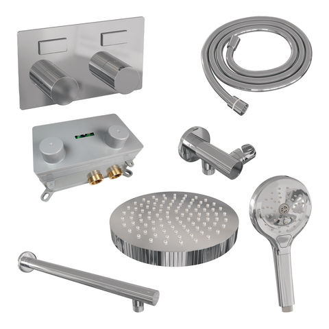 Brauer Stripe thermostatische inbouw regendouche met drukknoppen SET 28 met 25 cm douchekop en rechte muurarm en 3-standen handdouche en doucheslang en wandaansluitbocht chroom | Chroom | Nee | Rechte wandarm | 3-standen handdouche