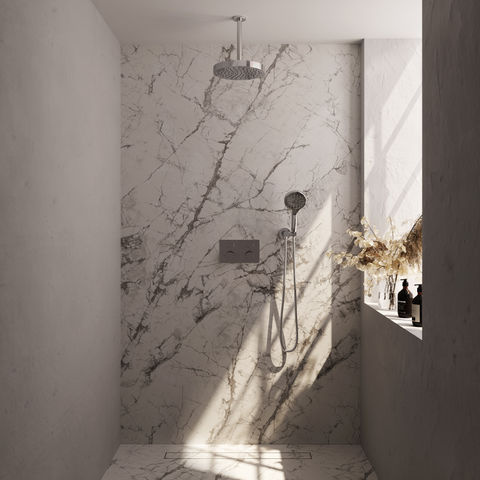 Kies deze set als je een moderne, minimalistische uitstraling wilt en het prettig vindt om alles netjes in de muur weggewerkt te hebben. De inbouwuitvoering vraagt wel om voldoende ruimte in de muur en is vooral geschikt bij een renovatie of nieuwbouw. De set is minder praktisch als je een glijstang wilt om de handdouche op te hangen, want die wordt niet meegeleverd. Door de verschillende kleuropties kun je de set goed afstemmen op jouw badkamerstijl.