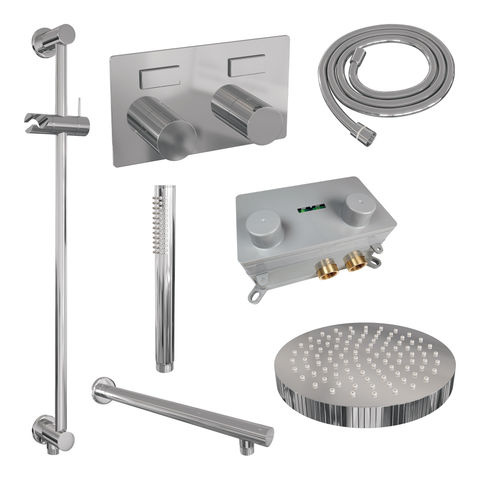 Brauer Stripe thermostatische inbouw regendouche met drukknoppen SET 31 met 25 cm douchekop en rechte muurarm en staaf handdouche en doucheslang en geïntegreerde glijstang chroom | Chroom | Ja | Rechte wandarm | Staafhanddouche