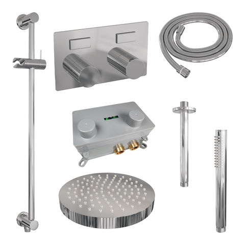 Brauer Stripe thermostatische inbouw regendouche met drukknoppen SET 33 met 25 cm douchekop en plafondarm en staaf handdouche en doucheslang en geïntegreerde glijstang chroom | Chroom | Ja | Plafondbuis | Staafhanddouche