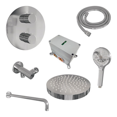 Offerte aanvraag voor Brauer Stripe thermostatische inbouw regendouche 3-weg rond SET 41 met 25 cm douchekop en gebogen muurarm en 3-standen handdouche en doucheslang en wandaansluitbocht chroom | Chroom | Nee | Gebogen wandarm | 3-standen handdouche