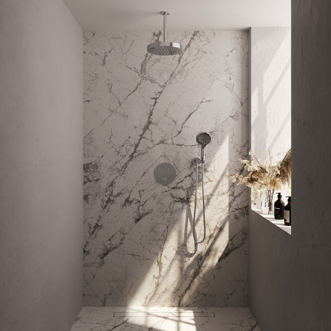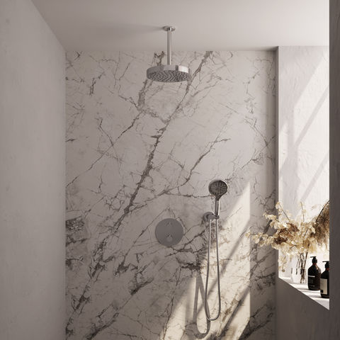 Deze inbouw regendouche is geschikt als je een strakke uitstraling wilt en de ruimte hebt voor een inbouwinstallatie. Het systeem werkt goed in badkamers waar je niet vaak meerdere douches tegelijk gebruikt, omdat je altijd één wateruitgang tegelijk kiest. De set is ideaal als je een complete oplossing zoekt zonder losse onderdelen. Heb je behoefte aan een glijstang om de handdouche op te hangen, dan moet je die apart aanschaffen. Door de verschillende kleuropties kun je de set aanpassen aan jouw stijl.
