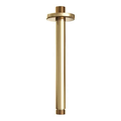 De set bestaat uit een hoofddouche van 25 cm doorsnee, een plafondarm, een staaf handdouche, een flexibele doucheslang en een wandaansluitbocht. De bediening werkt via drukknoppen, waarmee je eenvoudig kiest tussen de hoofddouche en de handdouche, of beide tegelijk gebruikt. De thermostaat zorgt voor een constante watertemperatuur tijdens het douchen. Het geheel is uitgevoerd in geborsteld goud met een PVD-coating, wat zorgt voor een matte afwerking en een kleur die lang mooi blijft. Het gebruikte materiaal is messing, wat bekend staat om zijn duurzaamheid. Deze set is verkrijgbaar in meerdere afwerkingen, zoals chroom, geborsteld gunmetal, koper, RVS en mat zwart, zodat je kunt kiezen wat het beste bij jouw stijl past.