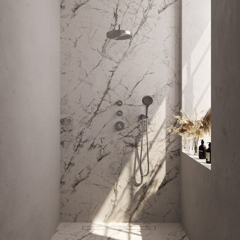 Deze inbouw regendouche is geschikt als je een moderne, opgeruimde uitstraling wilt en ruimte hebt voor inbouw in de muur. Het is een goede keuze voor zowel kleine als grotere badkamers, zolang je rekening houdt met de benodigde inbouwdiepte. Je kunt de hoofddouche en handdouche tegelijkertijd gebruiken, wat prettig is als je met meerdere personen doucht of graag afwisselt. Houd er wel rekening mee dat deze set zonder glijstang wordt geleverd; je kunt de handdouche dus niet ophangen aan een verstelbare stang. Als je dat belangrijk vindt, is het goed om dit vooraf te bedenken. Voor wie een complete en strakke doucheset zoekt, biedt deze Brauer Stripe set veel gebruiksgemak en keuze in afwerking.