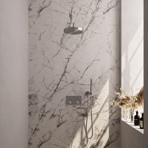 Deze inbouw doucheset is een goede keuze als je een moderne, opgeruimde douche wilt en het prettig vindt om alles netjes in de muur weg te werken. De set is handig als je graag de keuze hebt tussen een grote regendouche en een handdouche, bijvoorbeeld voor het uitspoelen van je haar of het schoonmaken van de douche. Houd er rekening mee dat deze set geen verschillende straalsoorten biedt en dat er geen glijstang is om de handdouche op te hangen. Dit kan minder praktisch zijn als je de handdouche op verschillende hoogtes wilt gebruiken. De set past het beste in een nieuwe of te renoveren badkamer waar je de inbouwdelen netjes kunt wegwerken.