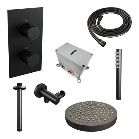 Offerte aanvraag voor Brauer Stripe thermostatische inbouw regendouche 3-weg rechthoekig SET 15 met 25 cm douchekop en plafondarm en staaf handdouche en doucheslang en wandaansluitbocht mat zwart | Mat zwart | Nee | Plafondbuis | Staafhanddouche