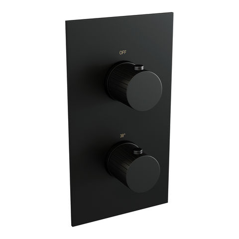 De set is uitgevoerd in mat zwart, een kleur die populair is in moderne badkamers. Het product is gemaakt van messing, wat bekend staat om zijn stevigheid en kwaliteit. De handdouche heeft drie verschillende straalsoorten, die je eenvoudig kunt selecteren met een druk op de knop. De thermostaat zorgt voor een constante watertemperatuur tijdens het douchen. De set wordt geleverd met een gebogen muurarm, geïntegreerde glijstang en een flexibele doucheslang. Naast mat zwart is deze set ook verkrijgbaar in chroom, geborsteld goud PVD, geborsteld gunmetal PVD, geborsteld koper PVD en geborsteld RVS PVD. Houd er rekening mee dat mat zwart gevoeliger kan zijn voor krassen; voorzichtig onderhoud is daarom aan te raden.