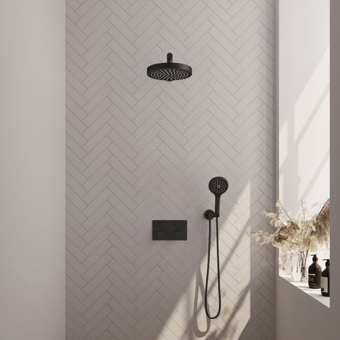 De doucheset is gemaakt van kwalitatief messing en heeft een mat zwarte afwerking. Dit geeft een moderne uitstraling, maar houd er rekening mee dat mat zwart wat gevoeliger kan zijn voor krassen. Je kunt ervoor kiezen om de afwerking te beschermen met autowas. De set bestaat uit een hoofddouche van 25 cm, een rechte muurarm, een handdouche met drie verschillende straalsoorten en een flexibele doucheslang. Met de drukknoppen wissel je eenvoudig tussen de verschillende wateruitgangen en straalsoorten. Het inbouwdeel wordt meegeleverd, wat montage overzichtelijker maakt. Je kunt de hoofddouche en handdouche zelfs gelijktijdig gebruiken. De bediening is intuïtief dankzij de drukknoppen.