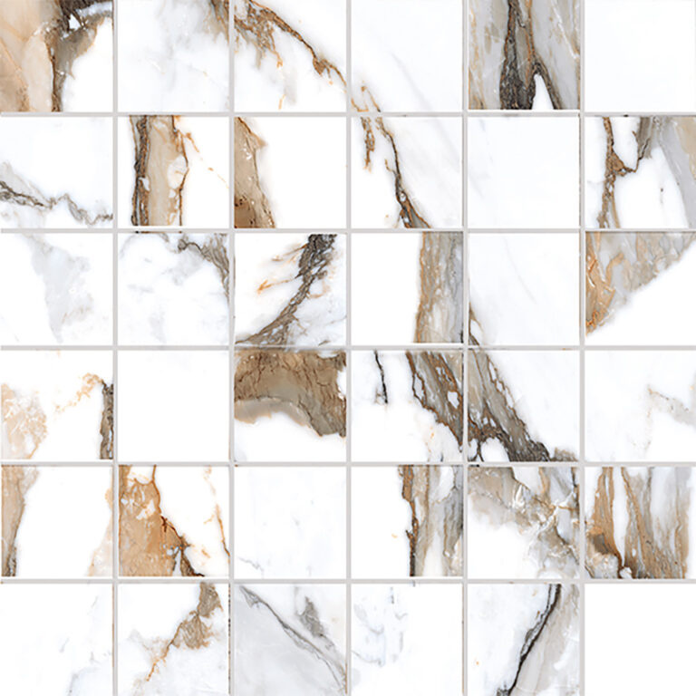 Ontdek de weelde van Calacatta Gold Mozaïek Pulido 5x5, perfect voor het creëren van een elegante wand in uw huis of kantoor.