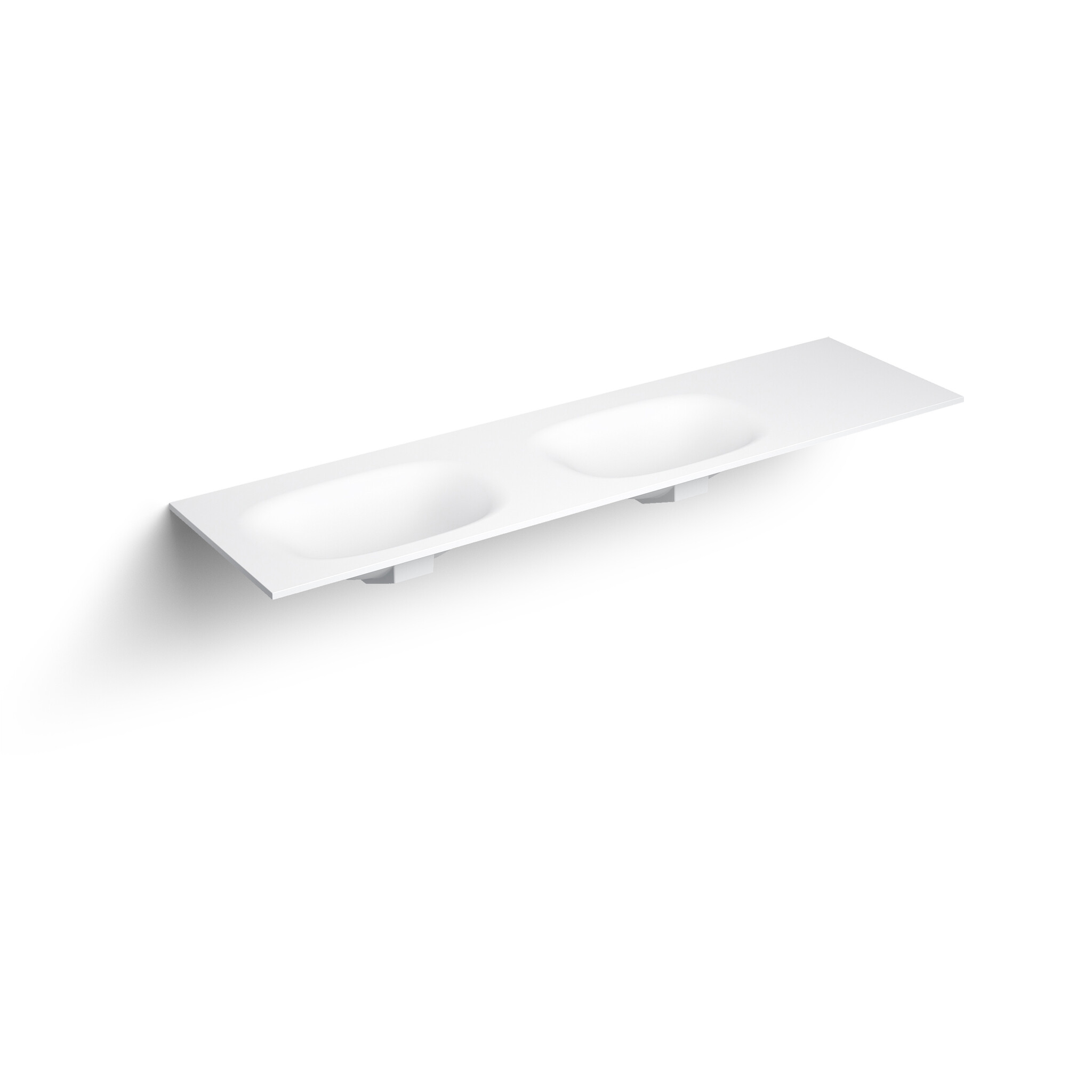 Clou Hammock wastafelblad, dubbele waskom 180cm, aluite – mat wit