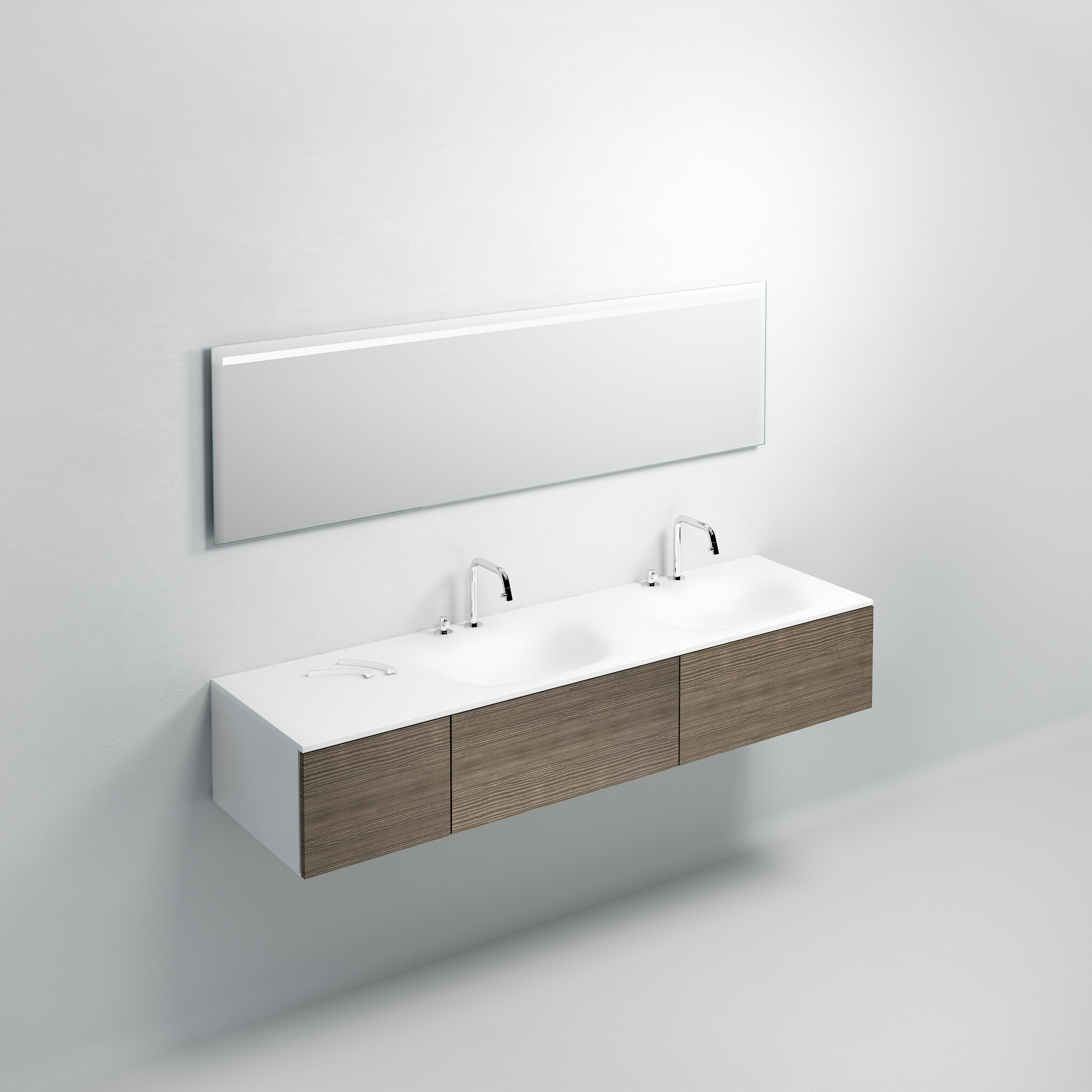 Clou Hammock wastafelblad, dubbele waskom 180cm, aluite – mat wit