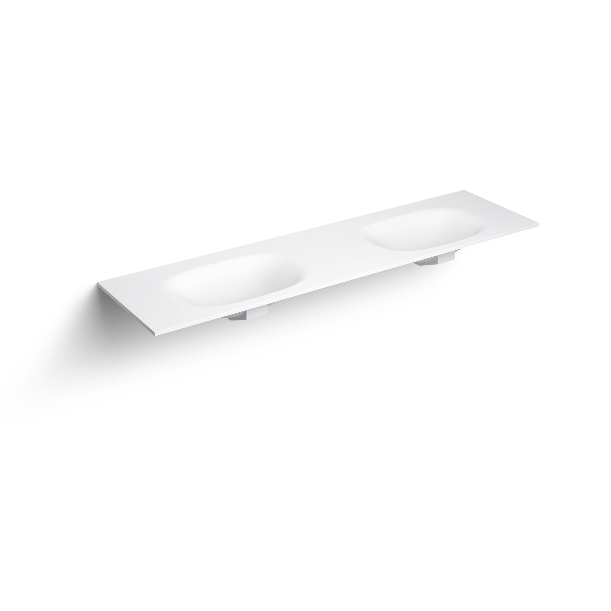 Clou Hammock wastafelblad, dubbele waskom 180cm, aluite – mat wit