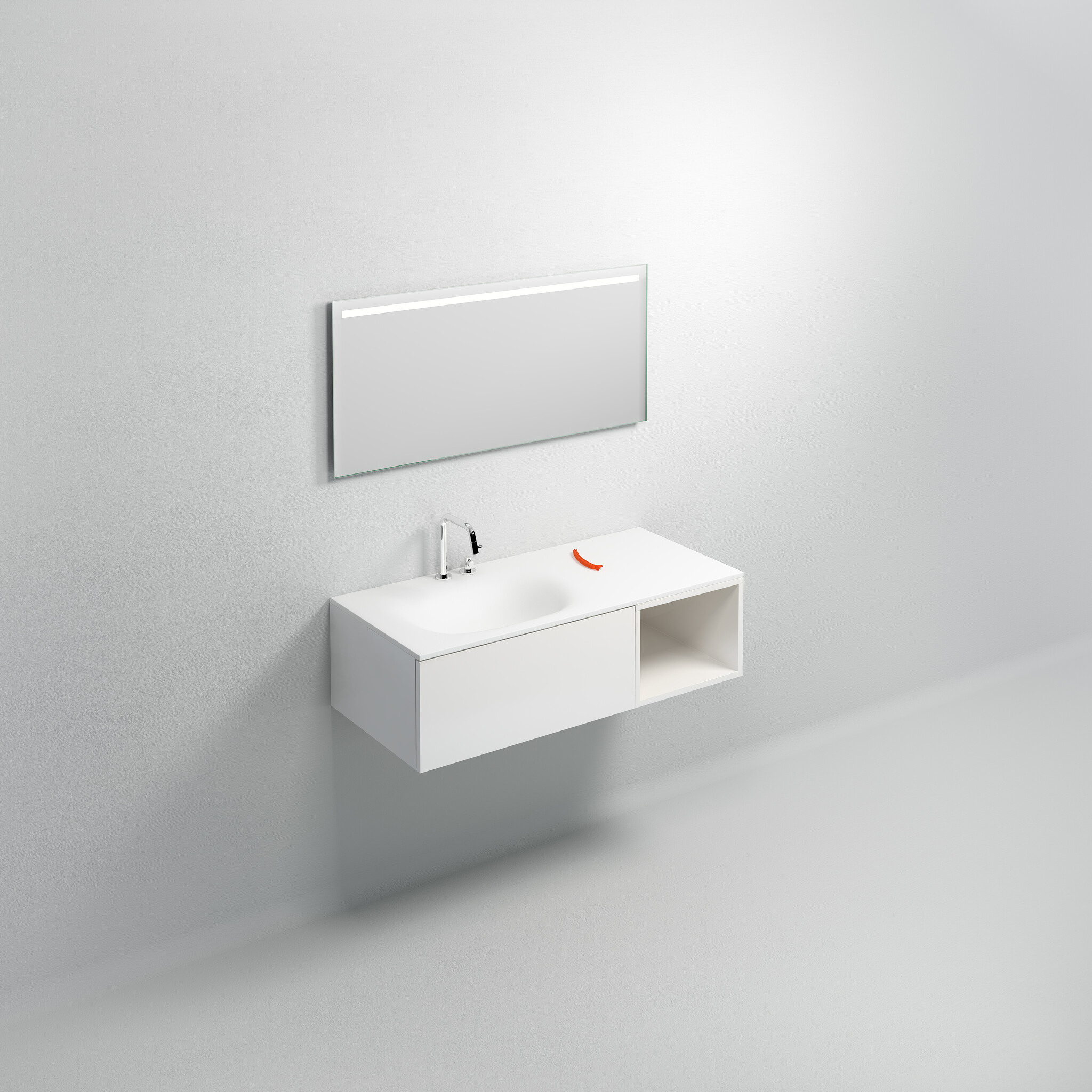 Clou | Hammock wastafelblad enkele bak glans wit (Aluite) 130cm Breed enkele wasbak in het Links Compositie 06