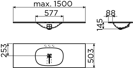 Clou | Hammock wastafelblad enkele bak glans wit (Aluite) 150cm Breed enkele wasbak in het Midden Compositie 11