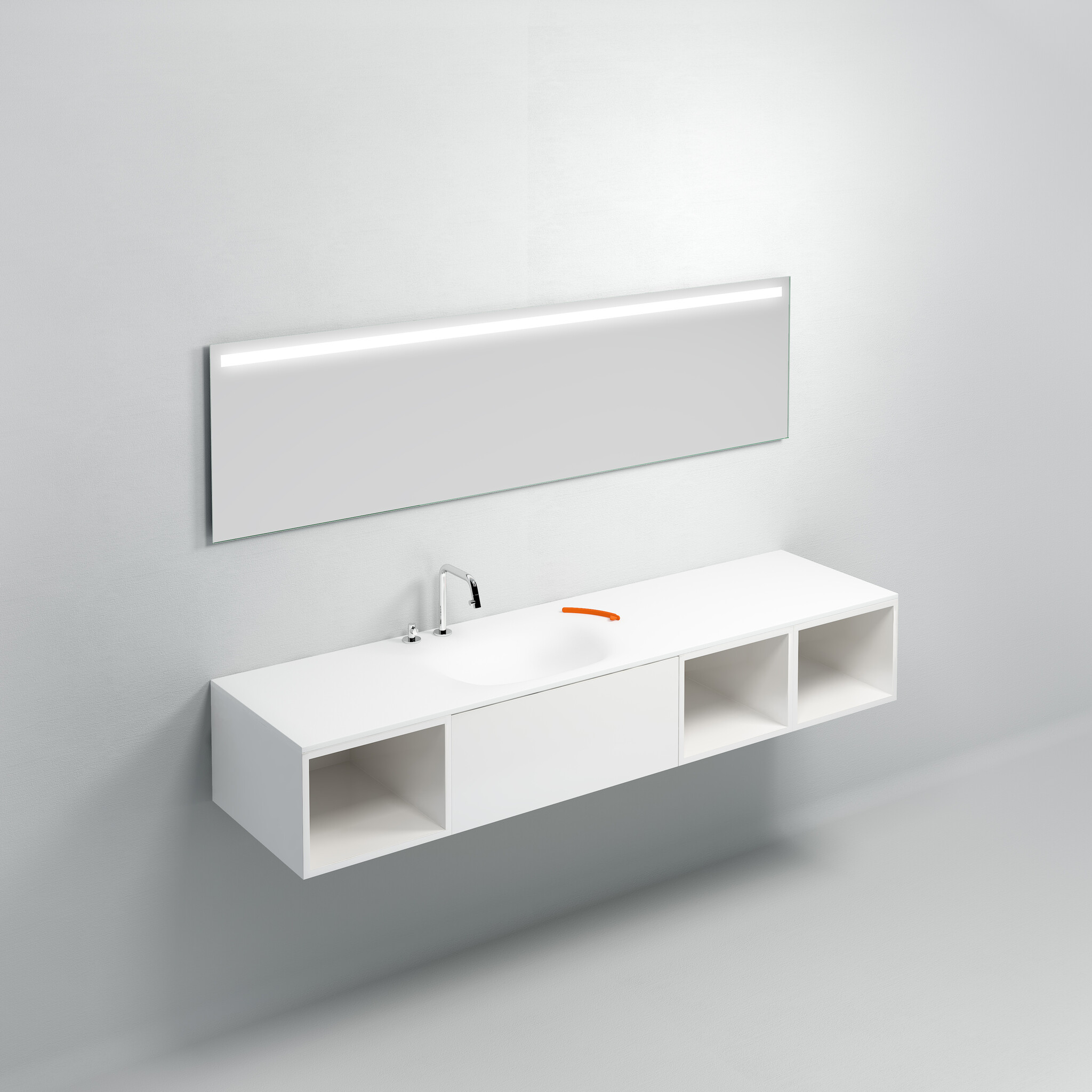 Clou | Hammock wastafelblad enkele bak glans wit (Aluite) 190cm Breed enkele wasbak in het Links Compositie 34