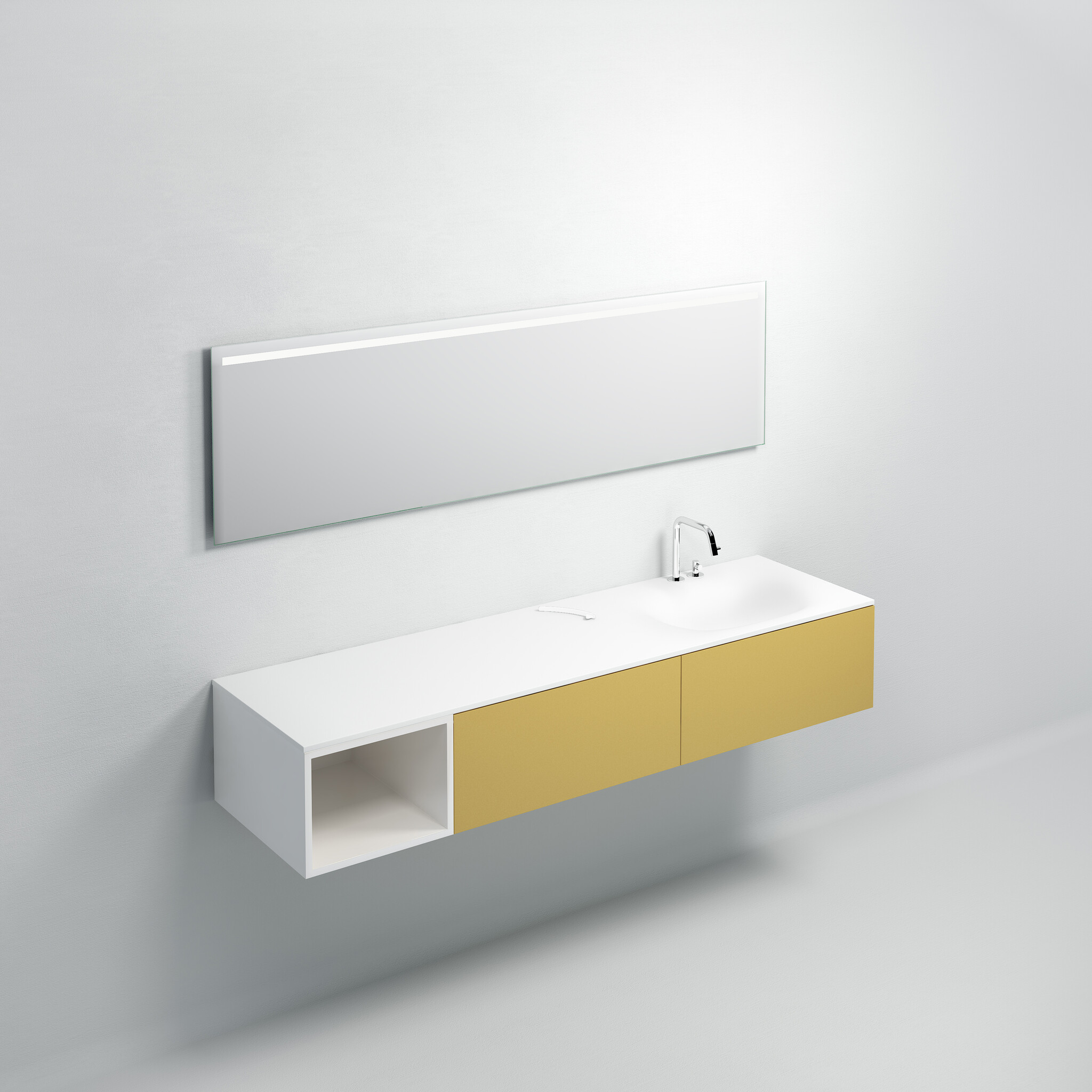 Offerte aanvraag voor Clou | Hammock wastafelblad enkele bak glans wit (Aluite) 180cm Breed enkele wasbak in het Rechts Compositie 24