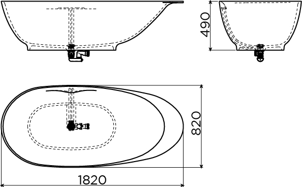 Clou First vrijstaand ligbad, met stop/go plug en sifon, aluite