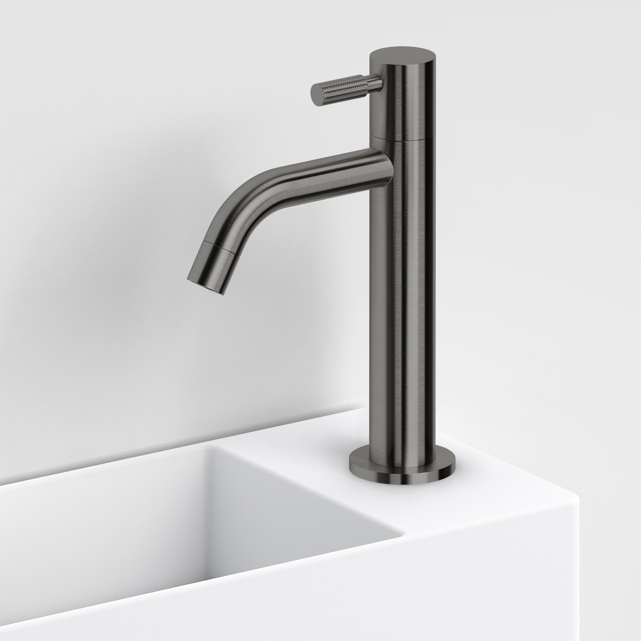 Maak kennis met de Clou Freddo 2 fonteinkraan, een stijlvolle toevoeging aan jouw badkamer. Deze hoge versie in gunmetal geborsteld PVD biedt niet alleen een modern design, maar ook een praktische oplossing voor elke kleine wastafel of hoekfontein.