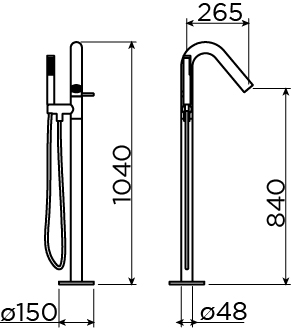 Xo vrijstaande badmengkraan type 8, met handdouche, chroom