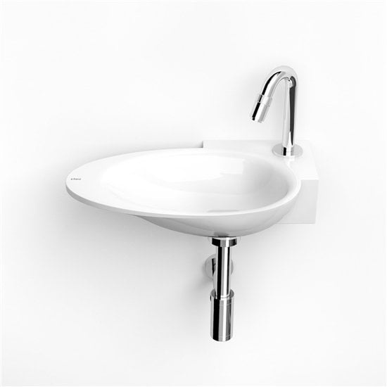 Clou First fonteinkom, met kranenbank rechts, mineral marmer – glanzend wit