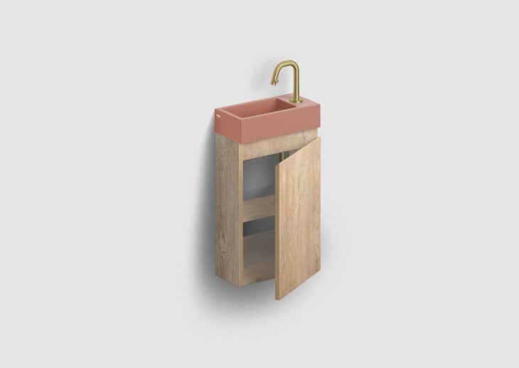 Maak kennis met de Clou Flush 3 fontein, een stijlvolle kleine wastafel die perfect is voor elke badkamer. Met zijn compact formaat van 36 cm en trendy mat roze afwerking brengt deze hoekfontein een frisse uitstraling in jouw ruimte!