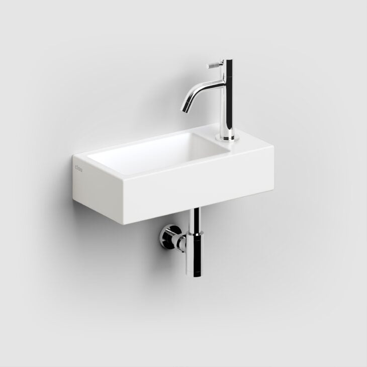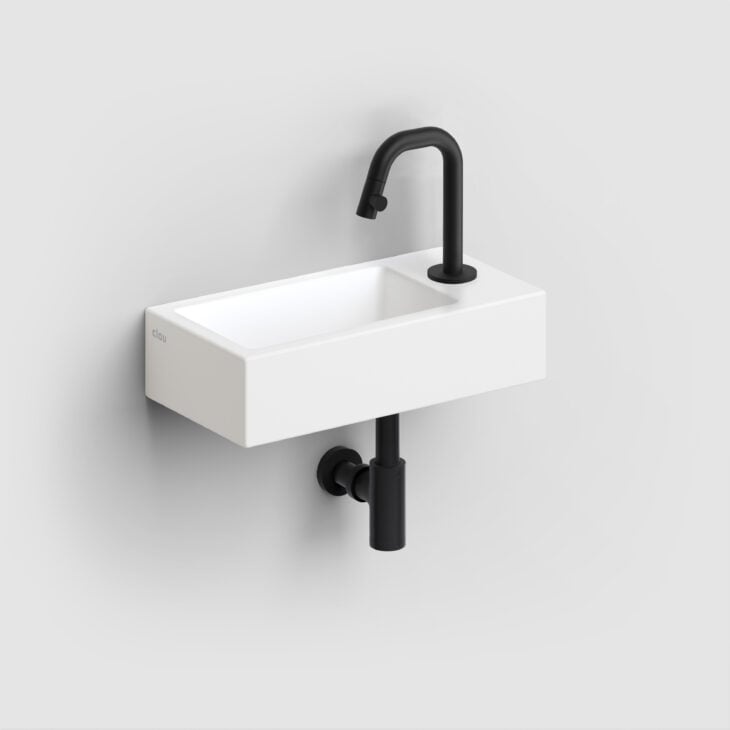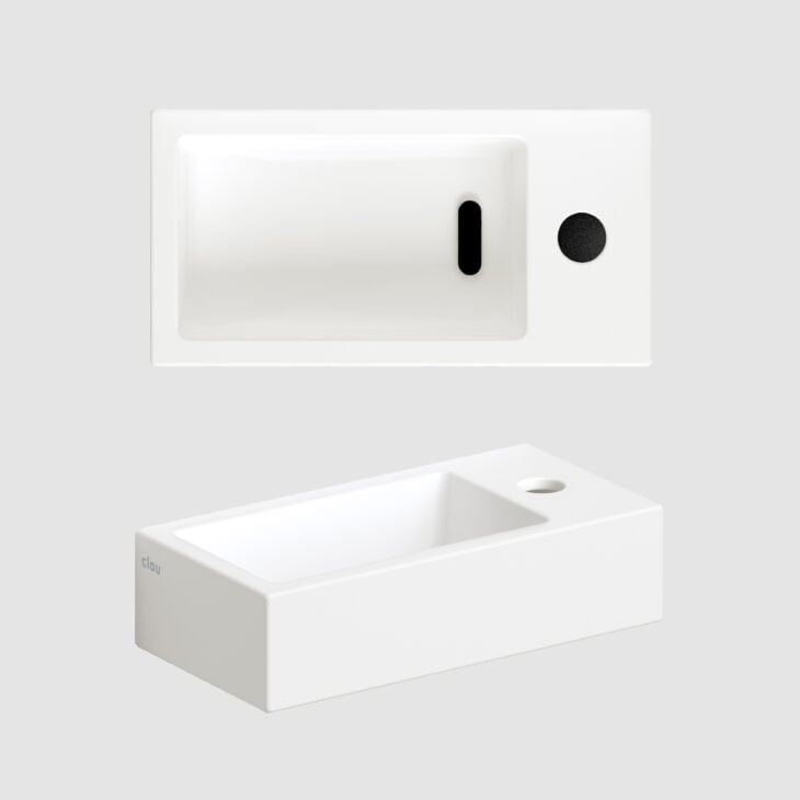 Met zijn strakke design voegt deze kleine wastafel een vleugje elegantie toe aan elke ruimte. Het gebruiksgemak is optimaal, dankzij de handige plaatsing aan de rechterkant en het duurzame mat witte keramiek dat eenvoudig te onderhouden is. Geen gedoe met schoonmaken; een snelle veeg en je wastafel ziet er weer fris uit!