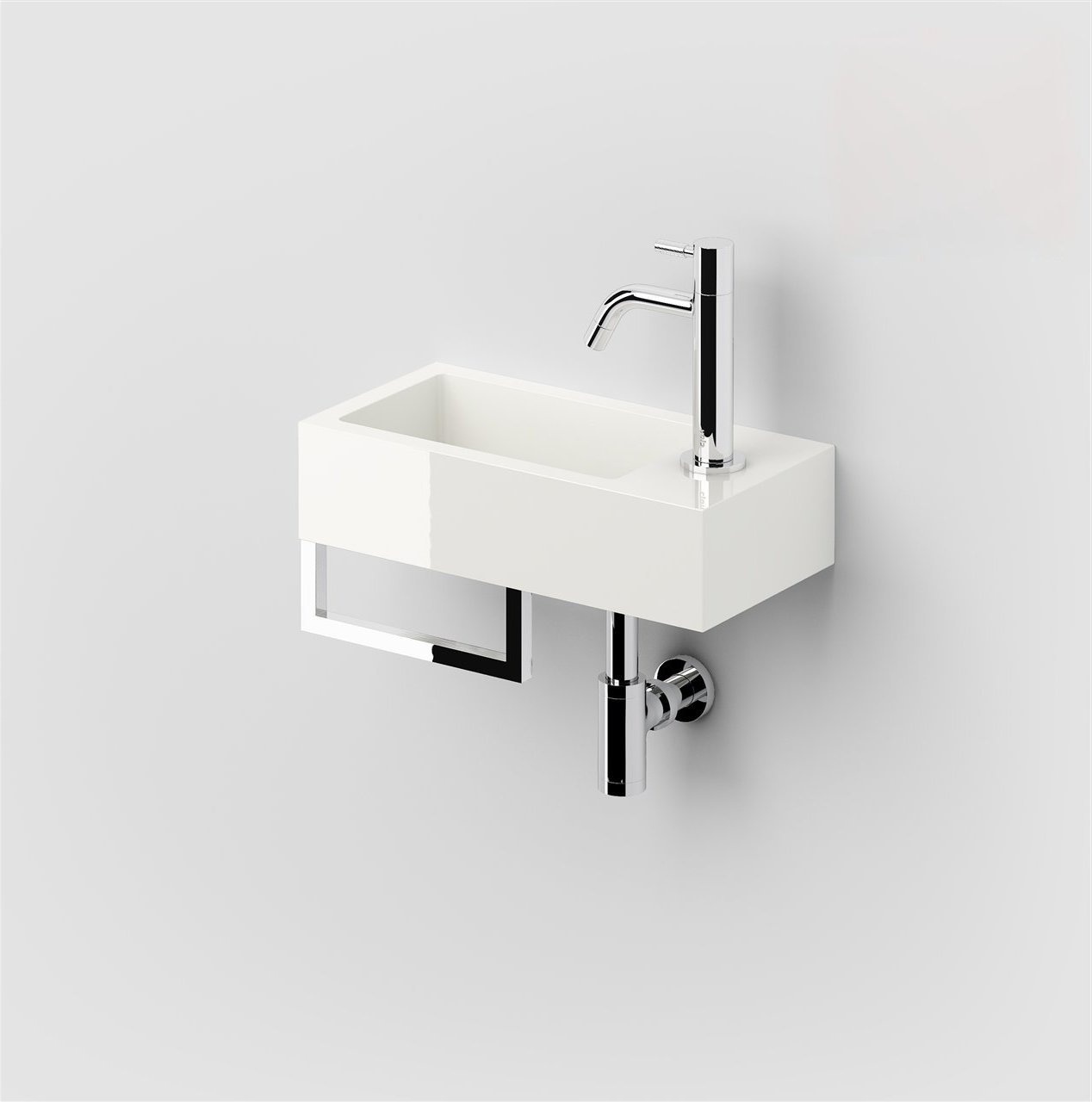 Clou Flush 3 toiletfontein rechts met voorbewerkt kraangat mineraalmarmer met handdoekhouder