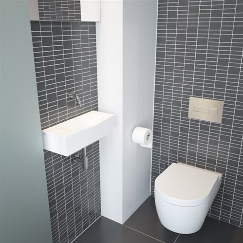 Met een afmeting van 45 cm past deze fontein perfect in elke hoek van je badkamer. De kranenbank aan de linkerkant maakt het gebruik nog handiger. Dit fonteintje is niet alleen functioneel, maar kan ook prachtig worden gecombineerd met andere producten uit de Clou serie voor een samenhangend geheel in jouw badkamer.