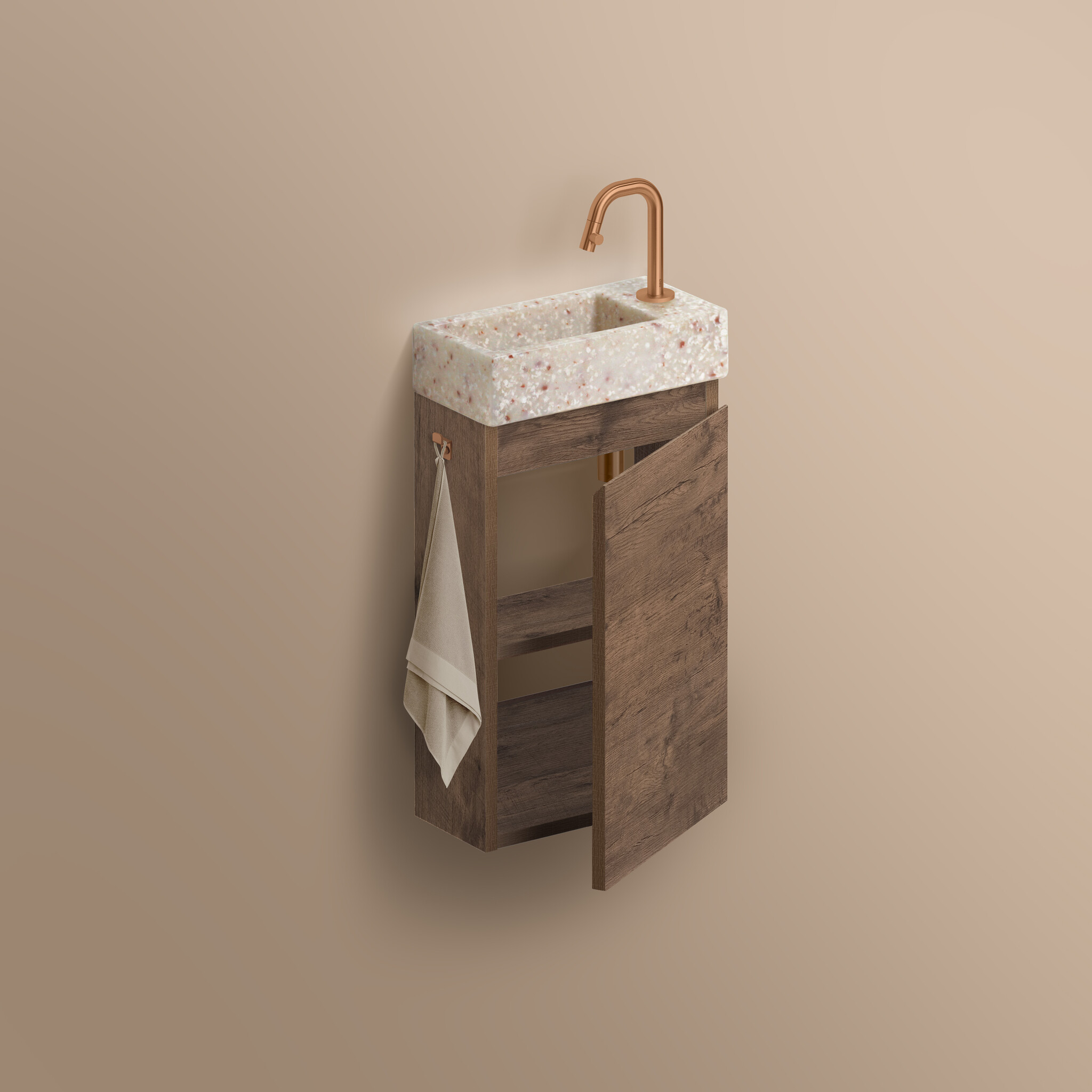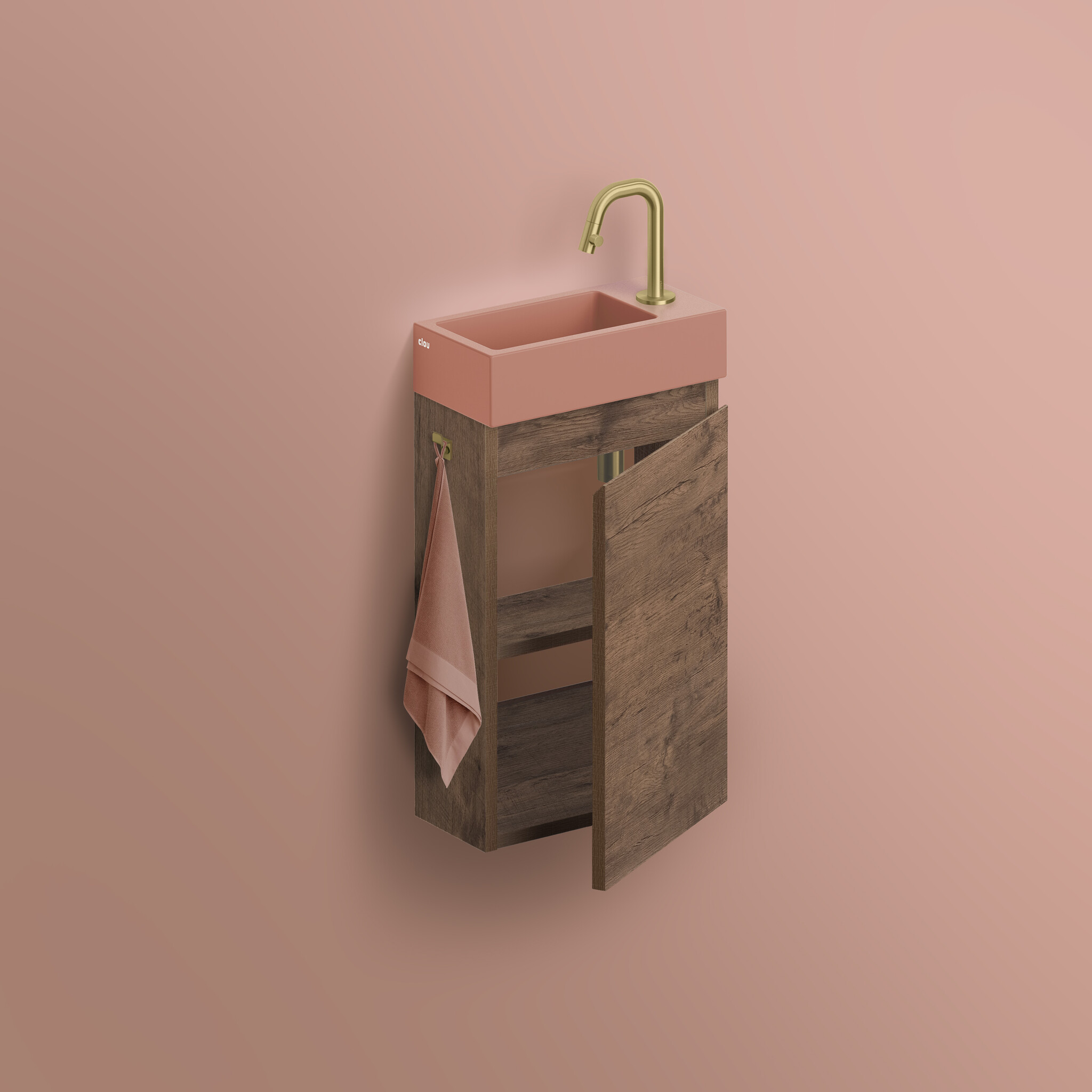 De Clou fontein is perfect voor kleinere ruimtes en biedt een moderne uitstraling die in elke badkamer past. Dankzij het slimme ontwerp en de afwerking in donker eiken, is deze hoekfontein een echte eyecatcher. Bovendien is het onderhoud eenvoudig, zodat je meer tijd hebt om van je badkamer te genieten.
