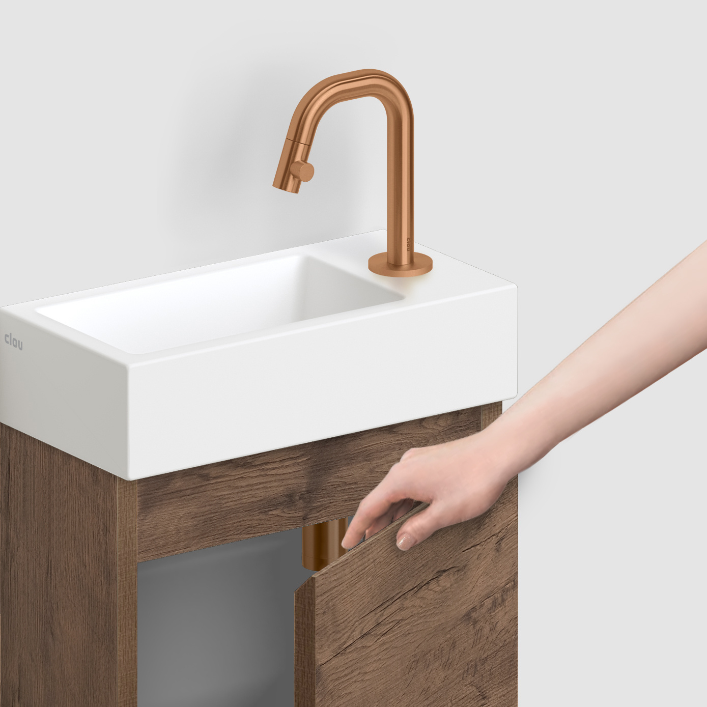 Deze kleine wastafel is speciaal ontworpen voor rechts plaatsing, wat ideaal is voor compacte ruimtes. Met een strakke afwerking en een elegant design past deze fontein perfect bij andere producten uit de Clou-serie, waardoor je een samenhangend geheel kunt creëren in je badkamer. Wil je meer weten over de mogelijkheden? Neem dan gerust contact met ons op!