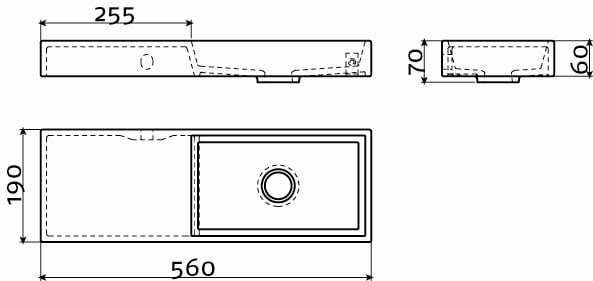 Clou Mini Wash Me fontein 56cm zonder kraangat, plateau - links - keramiek