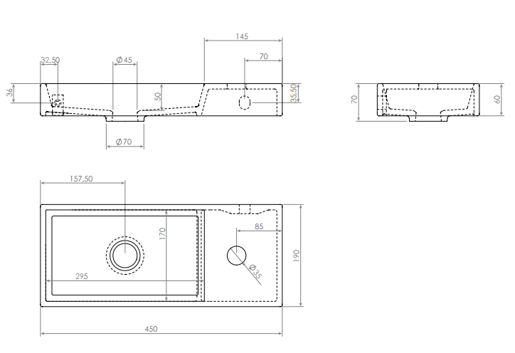 De Clou fontein heeft een strak design in mat zwart, wat niet alleen modern is, maar ook makkelijk te combineren met andere badkameraccessoires. Gemaakt van hoogwaardig keramiek, biedt deze kleine wastafel duurzaamheid en een lange levensduur. Dankzij de slimme plaatsing met het kraangat rechts, is het gebruiksgemak gegarandeerd, zelfs in de meest krappe hoeken.