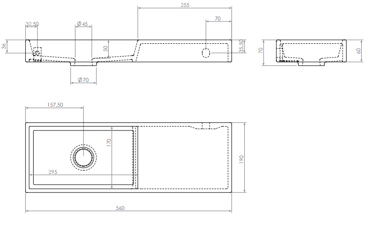 Clou Mini Wash Me fontein 56cm, zonder kraangat - rechts - wit keramiek