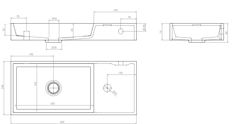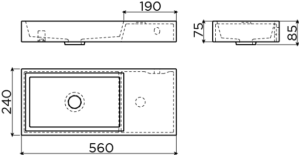 Clou Mini Wash Me Plus fontein | Mineraalmarmer | 56cm | Zonder kraangat | Rechts