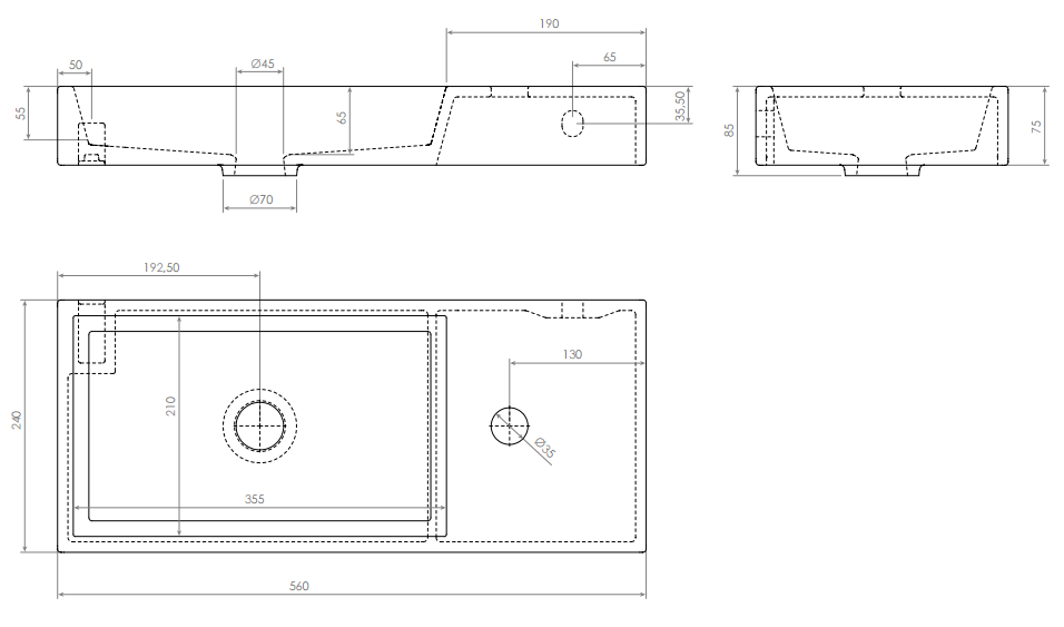 Clou Mini Wash Me Plus fontein 56 cm met kraangat rechts - wit keramiek