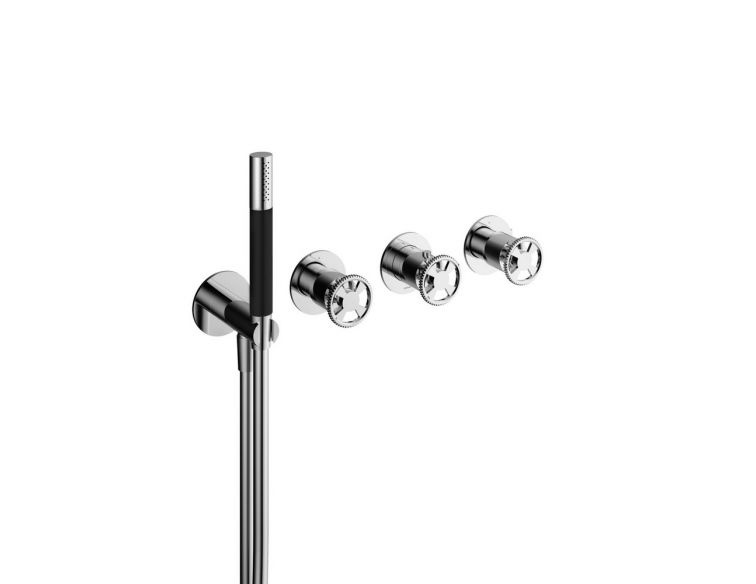 HotBath Cobber @work afbouwdeel voor inbouw bad/douchethermostaat zonder uitloop met 2 stopkranen en staafhanddouche Chroom CW7071EXTCR